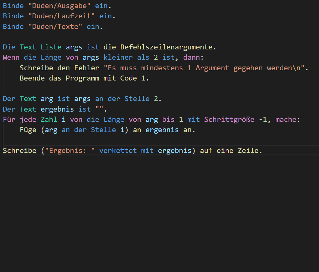 Eine funktionierende Programmiersprache, die sich ließt wie annährend korrektes Deutsch.