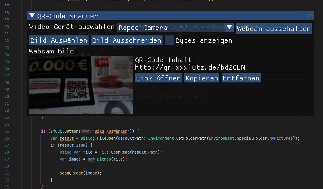 Ein einfacher QR-Code-Scanner mittels einer Webcam.