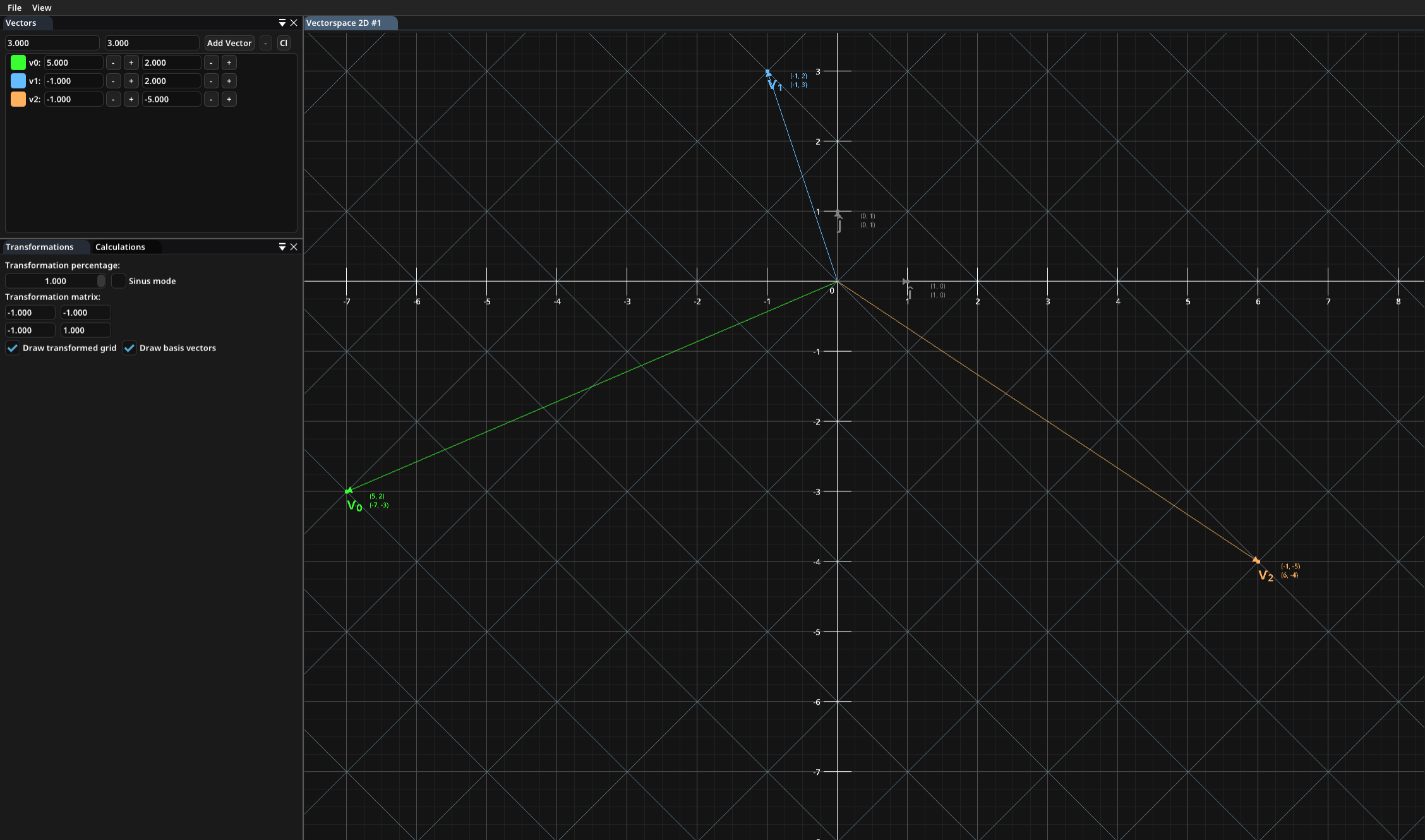 Ein graphisches Vektorraum und Transformationsmatrizen Visualierungswerkzeug in C++.