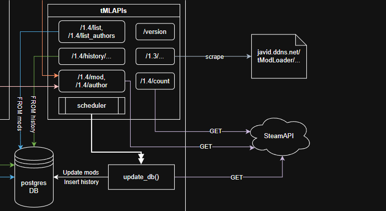 Eine REST-API, die SteamAPI-Daten über Terraria Mods formatiert bereitstellt und tägliche Statistiken in einer Datenbank speichert.