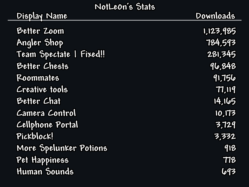 Ein Bildgenerator zur Einbettung von Terraria-Mod Statistiken in READMEs oder Forum-Profilen.